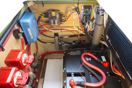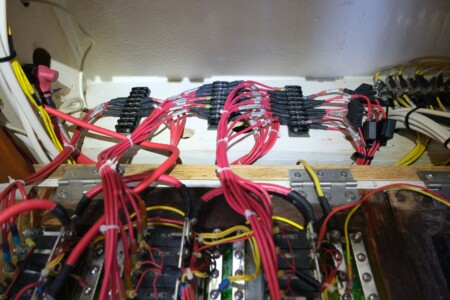 In 2022, Anila underwent a complete electrical refit. The vessel was fully re-wired with a diagram available, all cabling neatly run through conduits, protected with appropriate fuses, and clearly labeled for ease of maintenance. At the same time, the system was upgraded to modern LiFePO4 batteries from SOK, ensuring maximum efficiency and reliability. Most recently, a new inverter/charger was installed to further enhance onboard energy management.
