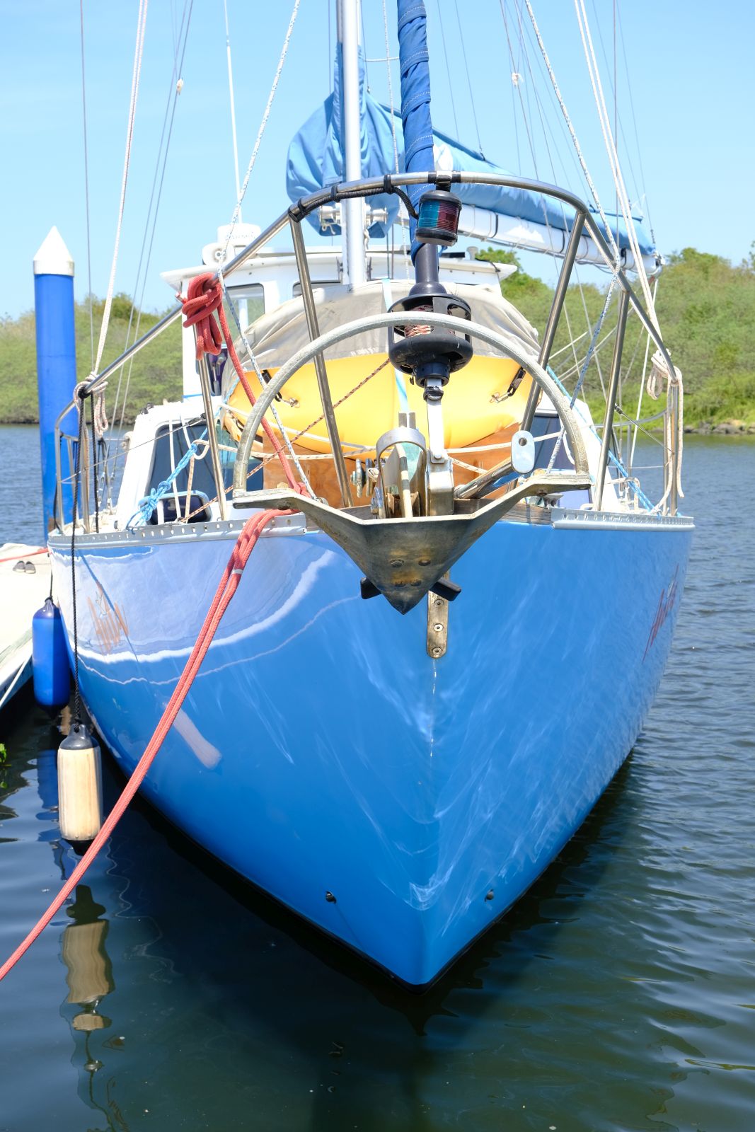 Standing rigging was replaced in 2020 with Sta-Lok 8 mm and 10 mm 19-strand wire, professionally swaged by XW Rigging in England. All chainplates and tangs were replaced, and all deck mounted fittings are reinforced with stainless steel backing plates for maximum strength offshore.