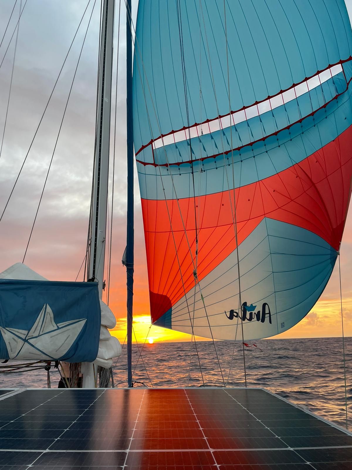 • jib & main from Rolly Tasker, and an Oxley Levante self-stabilizing spinnaker (2024/2020/2020)