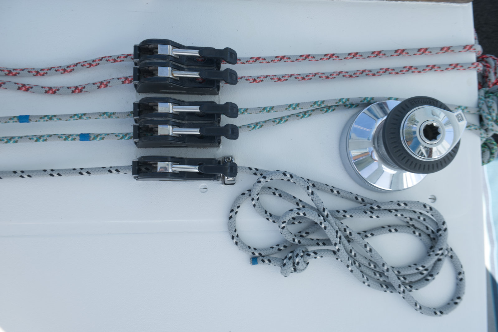 • Self-tailing winches for main sheet, main halyard and reefing lines, Barient 21 1x, Lewmar 34 1x, Unknown 1x (main sheet)