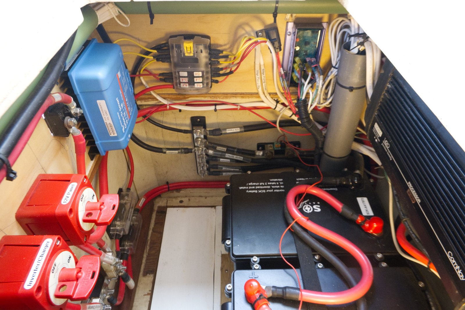 In 2022, Anila underwent a complete electrical refit. The vessel was fully re-wired with a diagram available, all cabling neatly run through conduits, protected with appropriate fuses, and clearly labeled for ease of maintenance. At the same time, the system was upgraded to modern LiFePO4 batteries from SOK, ensuring maximum efficiency and reliability. Most recently, a new inverter/charger was installed to further enhance onboard energy management.